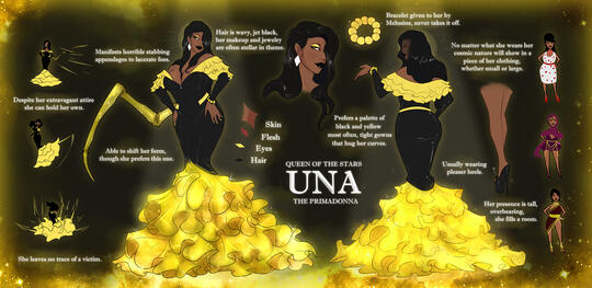 ✦ A sheet like this one would cost $170 since it is a front-back render of a character with five additional detail notes!