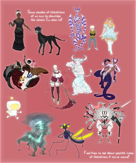 ✦ Character complexity or addition of a background will also still apply like the commission notes above!